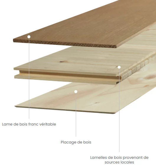 - Lamelle en bois franc de 4 mm d’épaisseur